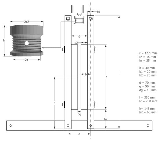 Schematic representation of the bag-pusher. Sizes shown are just for reference and have not been optimized. The design will require adjustments.