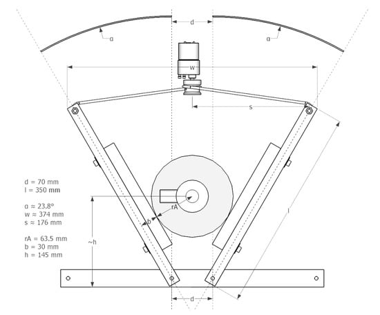 - In Figure 17, the arm the length (l), spacing between the two rotational axis (d), bag-valve resuscitator position (h) and string roll radius (r) are shown. Accordingly a motor with appropriate characteristics (torque, rpm) have to be chosen in a way, that the squeezing process runs smoothly with the desired pace while reaching the desired pressure and volume.