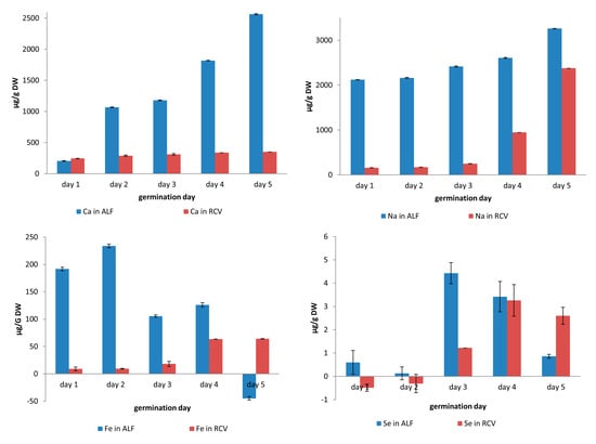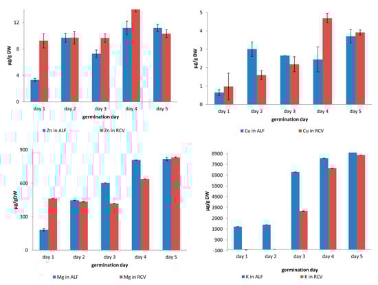 | µg/g DW | ALF Seeds | ALF Day 1 | ALF Day 2 | ALF Day 3 | ALF Day 4 | ALF Day 5 |