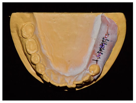 - Oh, S.-M.; Kim, J.-W.; Choi, S.-Y.; Lee, D.-H. Full-Mouth Rehabilitation with Bone-Level Implant Guide and Monolithic Zirconia Prosthesis for Fibular Free Flap Reconstruction: A Case History Report. Int. J. Prosthodont. 2018, 31, 573–576. [Google Scholar] [CrossRef] [PubMed]