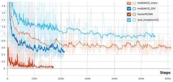 In Figure 7, the classification losses of the architectures used in this research are presented. The lowest classification loss comes from the Faster R-CNN network, while the highest is from the SSD Inception V2 model.