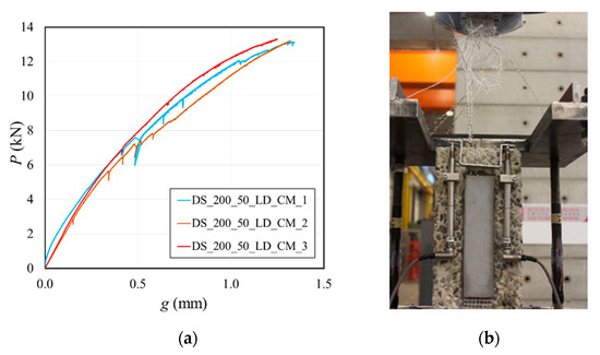 The main results of these tests are reported in Table 4, whereas the corresponding load responses are depicted in Figure 9a. It should be noted that the bonded length ℓ for these three specimens was 200 mm.