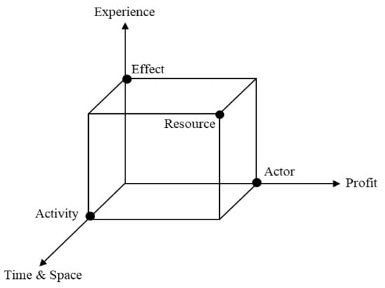 Owing to different concerns, different people may define value from different perspectives. Allee [42] argued that there are two types of value, tangible and intangible value. Therefore, we further argue that value is multidimensional, and that the value creation and value expectation of each actor may only contain some of these dimensions. For example, value can be defined from the perspective of economic benefits, product acquisition, resource used, and customer experience, etc. In this paper, in order to distinguish the value creation of the different actors, in service process and activity, we use three dimensions to define service value: time and space, profit, and experience, as shown in Figure 4.