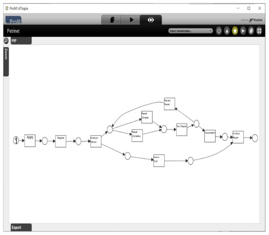 - Process Mining in Action. Available online: http://www.promtools.org/prom6/downloads/prom-6.0-tutorial.pdf (accessed on 18 August 2020).