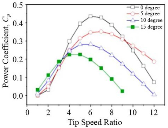 where is the blade angle and is TSR. Figure 1 shows the wind power coefficient variation for different blade angles. For a given blade angle, there exists a TSR at which the wind power coefficient reaches its maximum value.