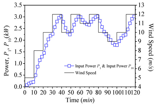 Figure 8 shows the input power variations for different wind speeds. Given a sampling frequency of once every ten minutes, the wind speed variation assumes a step form in the simulation. Table 1 and Table 2 list the data for the gear used in this study.