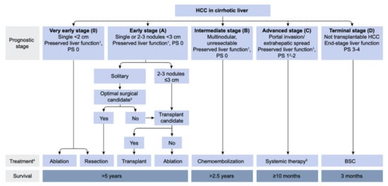 European Association for the Study of the Liver (EASL) clinical practice guidelines 2018 on hepatocellular carcinoma. Reprinted with permission from Ref. [6]. Abbreviations: PS, performance status; BSC, best supportive care.