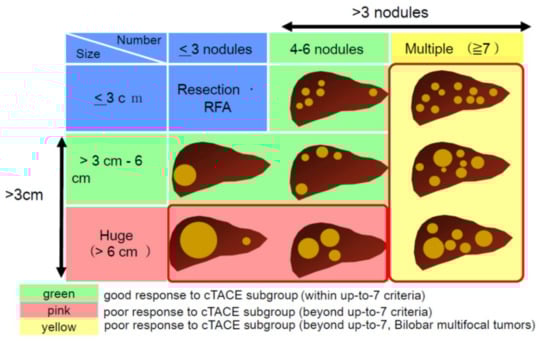 Heterogeneity of intermediate-stage HCC and grade of response to cTACE in each subgroup. Reproduced with permission from Ref. [92]. An Open Access article (CC BY 4.0).
