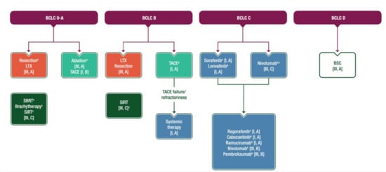 - ESMO Guidelines Committee. eUpdate Hepatocellular Carcinoma Algorithm. Available online: https://www.esmo.org/guidelines/gastrointestinal-cancers/hepatocellular-carcinoma/eupdate-hepatocellular-carcinoma-algorithm (accessed on 19 June 2020).