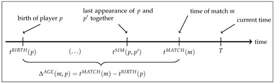 Thus, after censoring so that it lies within , it holds that . In addition, at most two of the values are non-zero, and any two non-zero values are for consecutive values of i. As a concrete example, assuming that , , and , then and uniquely identifies the age of player p at the time of match m.