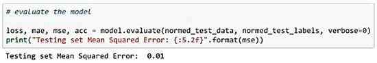 For our Keras case-study (layer 1 (64 neurons), activation function ReLU, and layer 2 (64 neurons), sigmoid activation function), we chose the “optimizer = rms” with the criterion “loss = MSE”, as described in Section 4.1).