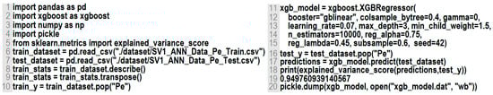 I/O data visualization is both tabular and in various plots. As mentioned in Section 5.2, one of the most popular web-based environments for interactive multi-language programming and computing is Jupyter Notebook. It was used for the creation and presentation of the various documents required and produced in the Keras implementation flow. Figure A2 shows the reading of the training and test datasets (as detailed in Appendix A), as well as how the normalization is done.