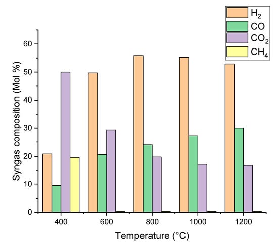 - Taba, L.E.; Irfan, M.F.; Daud, W.A.M.W.; Chakrabarti, M.H. The effect of temperature on various parameters in coal, biomass and CO-gasification: A review. Renew. Sustain. Energy Rev. 2012, 16, 5584–5596. [Google Scholar] [CrossRef]