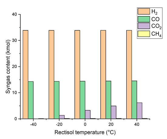 Effect of Rectisol temperature on syngas composition (40 bar).