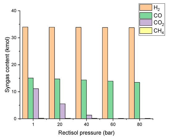 Effect of Rectisol pressure on syngas composition (−20 °C).