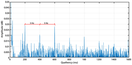 Another alternative to overcome the drawbacks mentioned so far is the proposed methods to eliminate frequencies that are not of interest so that it is easier to identify the components sought. In this context, one option is the technique known as cepstrum analysis, which calculates the inverse FT of the signal spectrum on a logarithmic scale. Failures alter the rotor speed and magnitude of the components, creating new frequency components that have their own harmonic families. The cepstrum provides an average of each of these families displayed as a single line with their respective harmonics bands. Identifying the frequency of each frequency also allows for the separation of signals that have been combined due to convolution [53,92].
