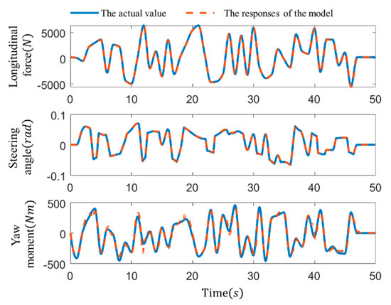 As shown in Figure 5, three responses of the BPNN model highly coincide with the actual value, illustrating that the identification of the inverse system is correct and the 4WID vehicle system is reversible.