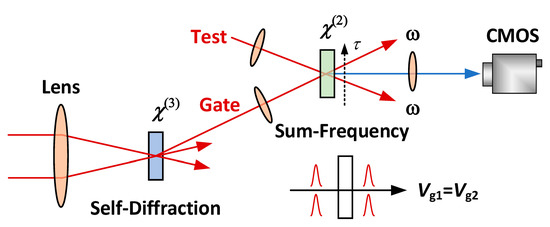 Since the 1990s, ultrashort pulse laser technology has greatly progressed. Nowadays, the peak power of laser pulse reaches up to PW [1], the intensity goes beyond 1022 W/cm2 [2,3], while the pulse width can be controlled at few-cycle even sub-cycle of light [4]. Simultaneously, ultrashort pulse lasers are widely applied in many subjects, such as physics, chemistry, biology, medicine, materials, and so on. Correspondingly, characterizing temporally laser pulse becomes more and more important no matter for the developments of ultrafast laser technology or its applications. To measure a transient physical quantity, we need another controllable faster quantity as a “time ruler” to compare with it. For example, in a streak camera [5], the time ruler is the electric-field gradient in the picosecond scale. However, ultrashort laser pulses in the femtosecond scale are so fast that it is difficult to arrange their ruler except themselves. So practically, characterizing ultrashort pulses usually works by “light measures light”, or by the comparison between a test pulse and a reference pulse. The reference can be the frequency-conversion [6], or spectral modulation [7,8] from the test pulse, as well as the test pulse itself [9]. Spectral interference [7,8] or optical nonlinearity [9] is induced for the comparison between the test and the reference. The measurement can be carried out in the time-domain [6,10], frequency-domain [7,8], or both [11,12]. In the time-domain, the most important parameter is the delay time between the test and the reference, which is controlled by their fly-time difference in the light paths. In the frequency-domain, spectrograph can be directly applied to spectral measurements for the output light, which benefits from the wide bandwidth of the ultrashort pulses. In the ultrashort pulse measurement, optical nonlinearity, as an all-rounder, e.g., frequency-conversion, correlation, spectral convolution, or time-filtering [6,7,8,9,10,11,12,13], plays a very important role.