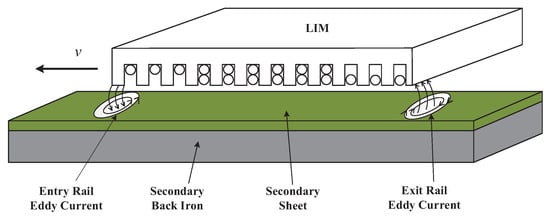 - Creppe, R.C.; Ulson, J.A.C.; Rodrigues, J.F. Influence of design parameters on linear induction motor end effect. IEEE Trans. Energy Convers. 2008, 23, 358–362. [Google Scholar] [CrossRef]