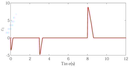 where denotes the approximation error and satisfies the condition . Referring to (32) and Young’s inequality, the following inequality can be obtained: