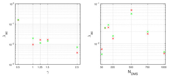 Note that the two proposed criteria, and , are complementary: the first allows us to have a detailed analysis with respect to several scales of representation and thus to study the relevance of a reduced model for an approximation of the acoustic radiation at a given resolution, while the second corresponds to a global vision and allows us to estimate the relevance of a basis reduction for an accumulation of representation scales.
