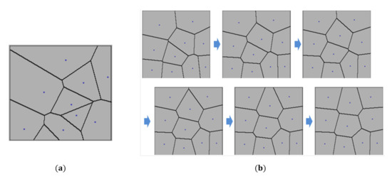 Modeling of indoor spaces: (a) Voronoi diagram; (b) Process of Lloyd’s relaxation.