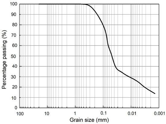 The development of subsurface erosion landform is closely related to soil properties. The soil that forms mud forest landform is a kind of loess-like soil (Figure 9). The results show that (a) all particles are smaller than 0.5 mm, (b) fine particle fraction (clay and silt) is more than three quarters, (c) a silt fraction (0.005–0.075 mm) accounts for the largest proportion, more than half. The soil was then classified as lean clay (CL) based on the Unified Soil Classification System (USCS) [57,58].