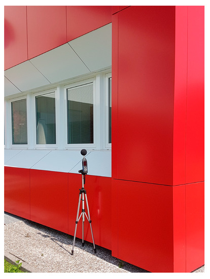 - ISO 16283-3:2016. Acoustics. Field Measurement of Sound Insulation in Buildings and of Building Elements Façade Sound Insulation; International Organization for Standardization: Geneva, Switzerland, 2016. [Google Scholar]