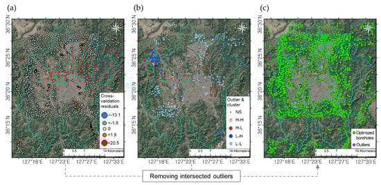 In this study, a hybrid model blended with a cross-validation-based method [17] and Anselin Local Moran’s I statistic-based method [39] was proposed and applied to the screened bedrock depth in the geotechnical DB of Daejeon city (Figure 4).