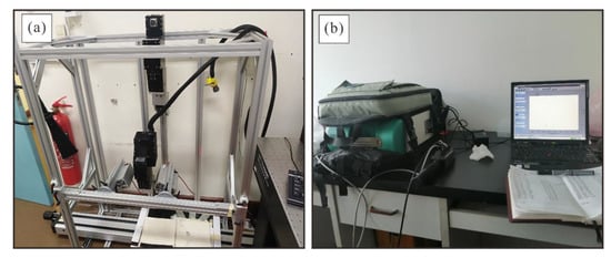 The hyperspectral imaging spectrometer used in this paper is HySpex-320m imaging system (Figure 7a). The rock chips were run sequentially through the camera at a distance of about 0.5 m under artificial illumination. Two sensors were used in this camera, one of which operated in the VNIR and the other in the SWIR regions. The VNIR sensor is configured to record 125 bands, consisting a full spectrum with a spectral sampling interval of 3.7 nm between 0.4 and 1.0 μm. The spectral range of the SWIR sensor is 1.0–2.5 μm with 256 bands, and the spectral resolution is 6.25 nm. Because the hyperspectral images were obtained from the cut surface of the rock chips at a close distance, the spatial resolution is as high as 0.3 mm × 0.3 mm.