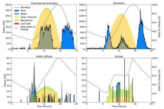 Further details about the specific technical characteristics of the modeled technologies, and about PV panels’ and solar collectors’ outputs, are available in Figure 3.
