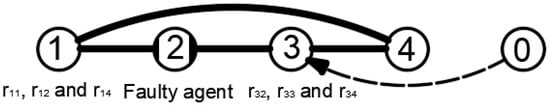 where . Therefore, residual generators will only be influenced by . Assumption 3 indicates that if , therefore, and , indicates that agent is faulty. □