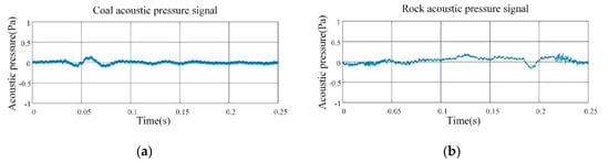 Acoustic pressure signal. (a) Coal acoustic pressure signal; (b) Gangue acoustic pressure signal.