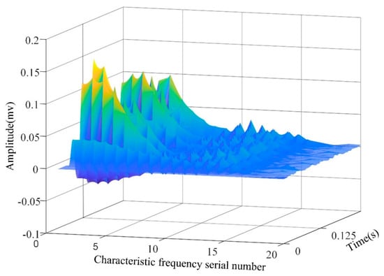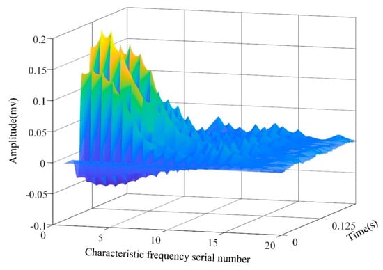 We apply the AN response model to process the sound pressure signals of coal and gangue and the auditory spectrum, consisting of each characteristic frequency of the AN response model’s outputs, is obtained. Figure 6 and Figure 7 represent the auditory spectrum of coal and gangue.