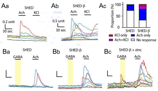 3.4. Supplementation of Zinc during Differentiation Affects GABA-Induced Ca2+ Responses in SHED β-Cells