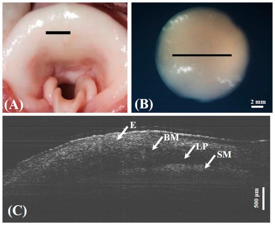 - Kraft, M.; Glanz, H.; von Gerlach, S.; Wisweh, H.; Lubatschowski, H.; Arens, C. Clinical value of optical coherence tomography in laryngology. Head Neck 2008, 30, 1628–1635. [Google Scholar] [CrossRef]