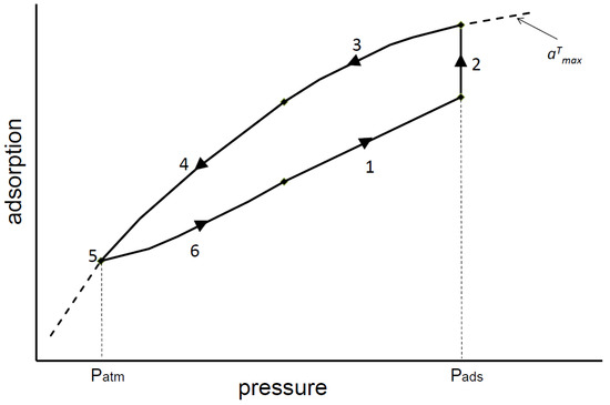 The adsorption process is a non-equilibrium process. It takes place until the bed is saturated with the adsorbed substance. After the adsorption stage, the adsorption bed needs to be regenerated to be able to be used for the next gas mixture separation cycle. To achieve the relative continuity of the process, paired adsorption tanks are used. The air separation process is carried out in such a way that the adsorption stage takes place in only one of the adsorption tanks at a given time. Simultaneously, the regeneration of the bed is carried out in the second tank. This method is called Swing Adsorption (SA) [10,11].