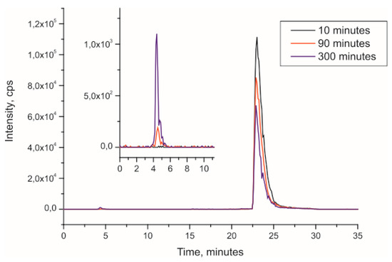 As mentioned above, saliva was proven to contain phenolics after consumption of phenolics-rich beverages, and these compounds have been found to persist in oral cavity up to 300 min, despite a constant salivary flow [21]. Our research shows that this time is sufficient for the partial decomposition of kaempferol, quercetin, and isorhamnetin and complete decomposition of myricetin. To check if detected compounds may be considered as a dead-end product, we decided to incubate analyzed flavonols for further 18 h. After 24 h of incubation, no additional compounds were detected as degradation products of the analyzed flavonols. However, further decomposition of kaempferol, quercetin, and isorhamnetin was observed. The levels of remaining flavonols calculated as average amount for five volunteers was as follow: 55.42% ± 8.12 of kaempferol, 23.17% ± 5.48 of quercetin, and 39.37% ± 11.11 of isorhamnetin. This indicates that, even after long time of incubation, the order of stability of flavonols remains the same. Since it is known that the stability of flavonoids strongly depends on the pH, we controlled it during the experiment. For all solutions, pH fluctuation ranged from 6.96 ± 0.10 to 7.06 ± 0.15 at the beginning and from 6.98 ± 0.12 to 7.39 ± 0.09 at the end of the experimental period.