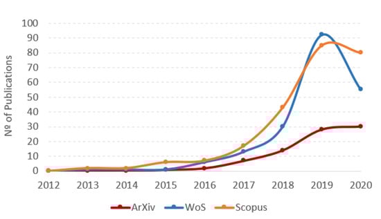 Figure 2 shows the research papers published in the intersection of deep learning and registration involving 3D data over the last years in each repository. It is noticeable how the number of publications has increased over the last three years. Several search strings were employed to identify the methods surveyed in this paper. The keywords grouped by the concept are: