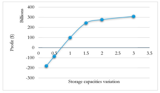 The impact of storage capacity variability on profitability is demonstrated in Figure 10. It is revealed that as storage capacity increases, profit increases due to a decline in lost sales and the satisfaction of most customer needs. Reducing store capacities by more than 55% will generate non-profitable plans.