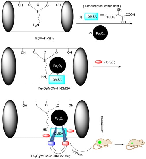 Interestingly, these nanostructures have internal (cylindrical pores) [53] and exterior [54] surfaces that allow selective functionalization for catalytic and drug delivery applications. The main purpose of this review is providing a general knowledge over the recent applications of mesoporous silica as nanocatalyst and carrier for drug delivery. Also, various novel methodologies for preparation of this type of nanocatalyst and their catalytic system up until present time have been provided. Thus, an in-depth study on the catalytic applications, and the usage as nanocarrier for drug-delivery, will be highlighted.