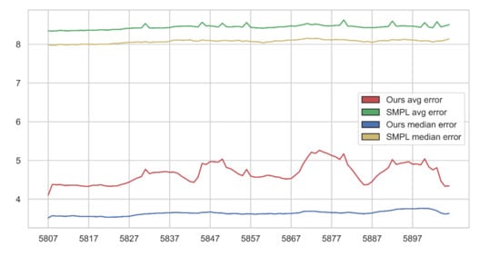 | Frame No. | Our Average Error | SMPL Average Error | Our Median Error | SMPL Median Error |