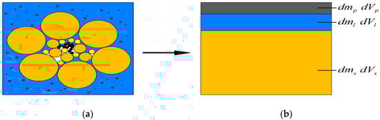 As shown in Figure 1, the micro-model for coarse-grained soil is composed of three parts, which includes solid medium ( , is mass of the solid and is volume of the solid), fluid medium (, is mass of the solid and is volume of the solid), and fine particles (, is mass of the solid and is volume of the solid).