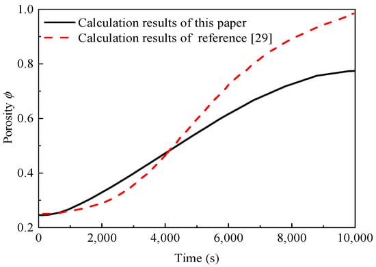 In this section, the software COMSOL Multiphysics® is used to solve the mathematical model. Moreover, the solution results were compared with those in reference [33] to verify the accuracy of the coupling model in this paper.