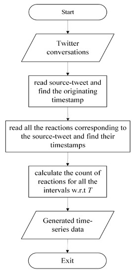 The flow chart of transforming Twitter conversations into time-series vectors for all combinations of E and T is given in Figure 4.