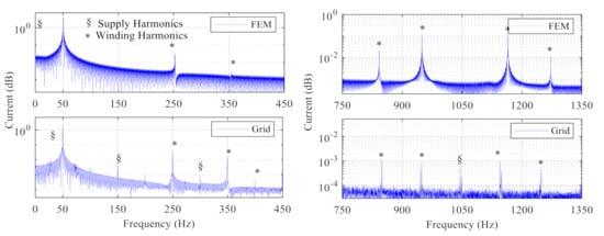 - Sapena-Bano, A.; Martinez-Roman, J.; Puche-Panadero, R.; Pineda-Sanchez, M.; Perez-Cruz, J.; Riera-Guasp, M. Induction machine model with space harmonics for fault diagnosis based on the convolution theorem. Int. J. Electr. Power Energy Syst. 2018, 100, 463–481. [Google Scholar]