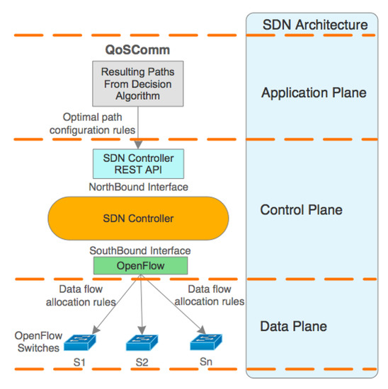 The communication process primary function is to configure the optimal path from the decision algorithm described in the previous section, through the REST API provided by the SDN controller as is represented in Figure 3.