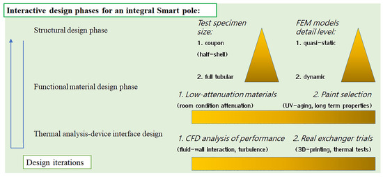 In this study, we focus on a physical application for wireless technologies, i.e., an integral smart pole. The research targets to offer the physical platform and process for the latest 5G implementations with a multiplicity of functional requirements along with the structural safety. Whenever the (5G) wireless devices and services require highly precise and stable location in a pole, meaning minimum sway in various environments, the mechanical design must be united with the functional and thermal design. The main phases of the process described in this study are shown in Figure 2.