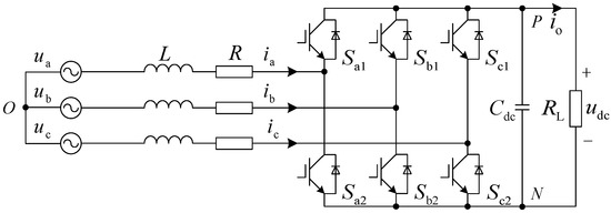 The interlinking converter is a key module to connect AC sub-microgrid and DC sub-microgrid. In this paper, the interlinking converter adopts a three-phase pulse width modulation (PWM) converter. In order to increase the power exchange capacity, the two converters are connected in parallel. The main circuit topology of the interlinking converter used in this paper is shown in Figure 9 [25].