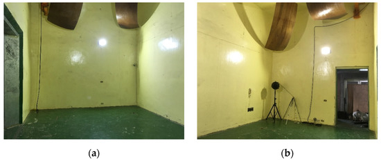 Picture of reverberation room: (a) from position A; (b) from position B.
